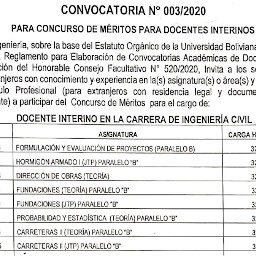 CONVOCATORIA No 003/2020: La Facultad de Ingeniería sobre la base del Estatuto Orgánico de...