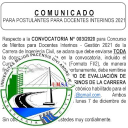 C O M U N I C A D O PARA POSTULANTES PARA DOCENTES INTERINOS 2021